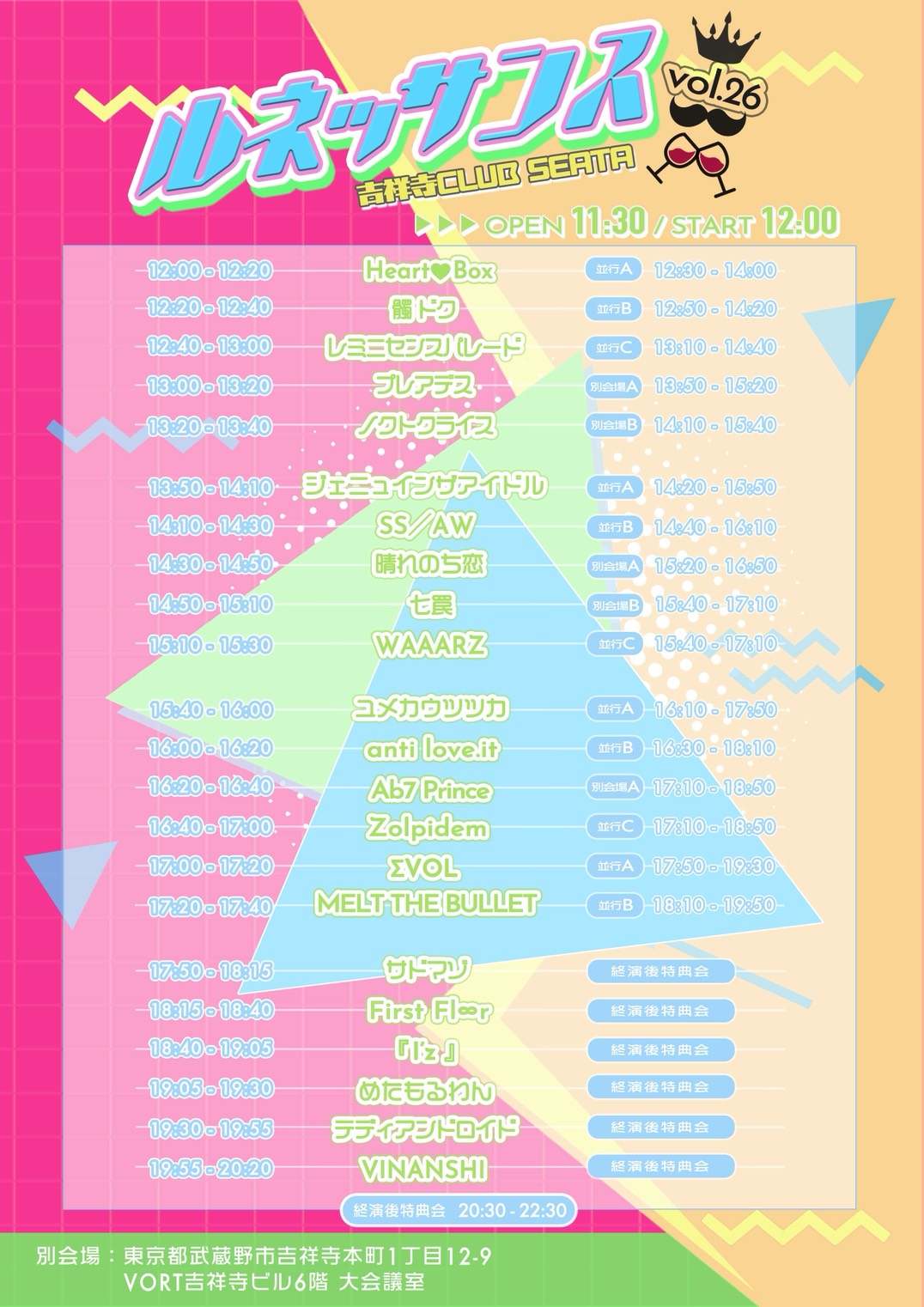 - VINANSHI , テディアンドロイド , めたもるわん , 『 I’z 』 , First Fl∞r , サドマゾ , MELT THE BULLET , ΣVOL , Zolpidem , Ab7 Prince , anti love.it , ユメカウツツカ , WAAARZ , 七罠 , 晴れのち恋 , SS/AW , ジェニュインザアイドル , ノクトクライス , プレアデス , レミニセンスパレード , 髑 ドク , Heart❤︎Box