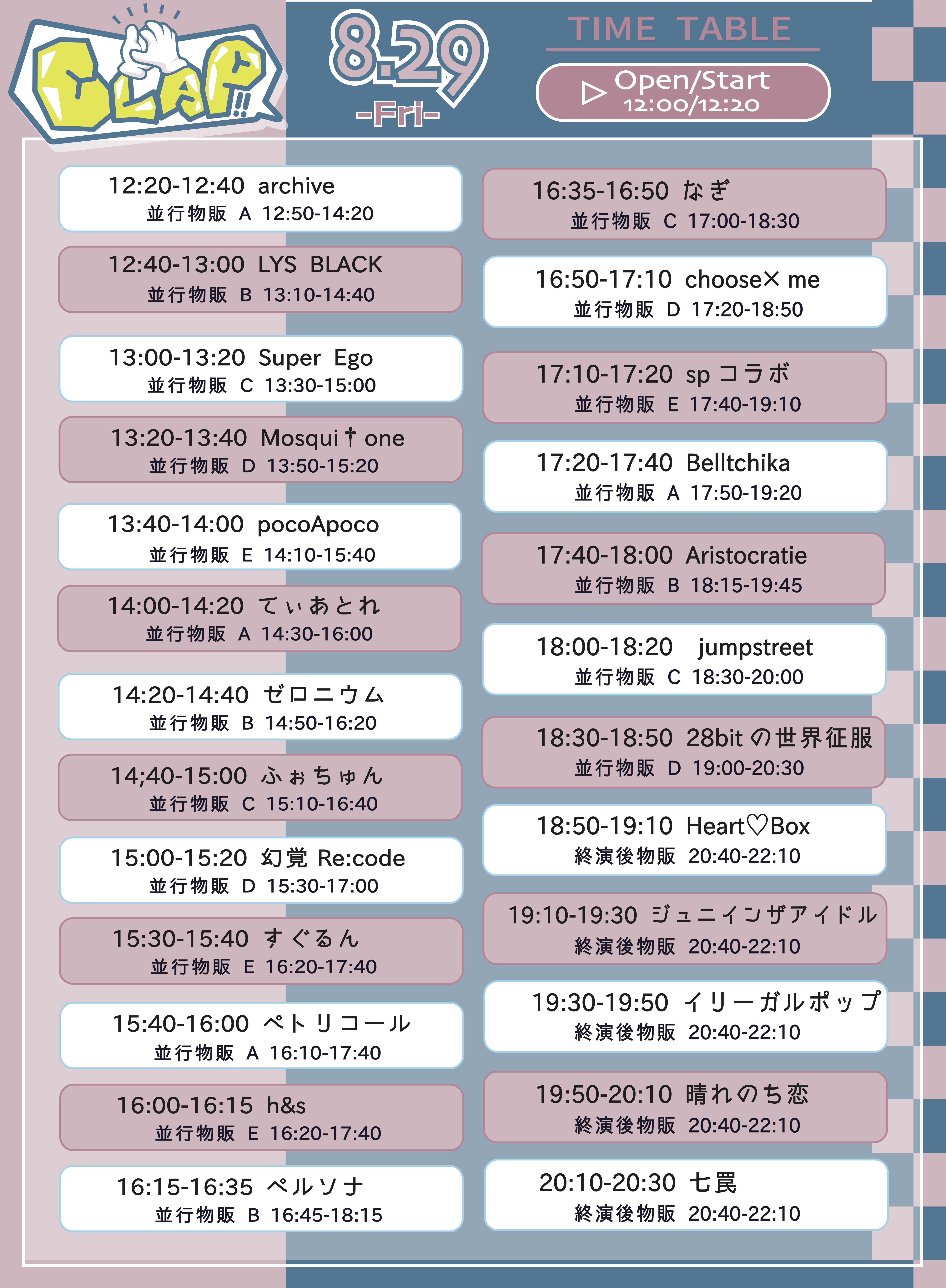- 七罠 , 晴れのち恋 , イリーガルポップ , ジュニインザアイドル , Heart❤︎Box , 28bitの世界征服 , jumpstreet , Aristocratie , Belltchika , すぐるん , h&s , なぎ , choose×me , ペルソナ , ペトリコール , 幻覚Re:code , ふぉちゅん , ゼロニウム , てぃあとれ , pocoApoco , Mosqui†one , Super Ego , LYS BLACK , archive