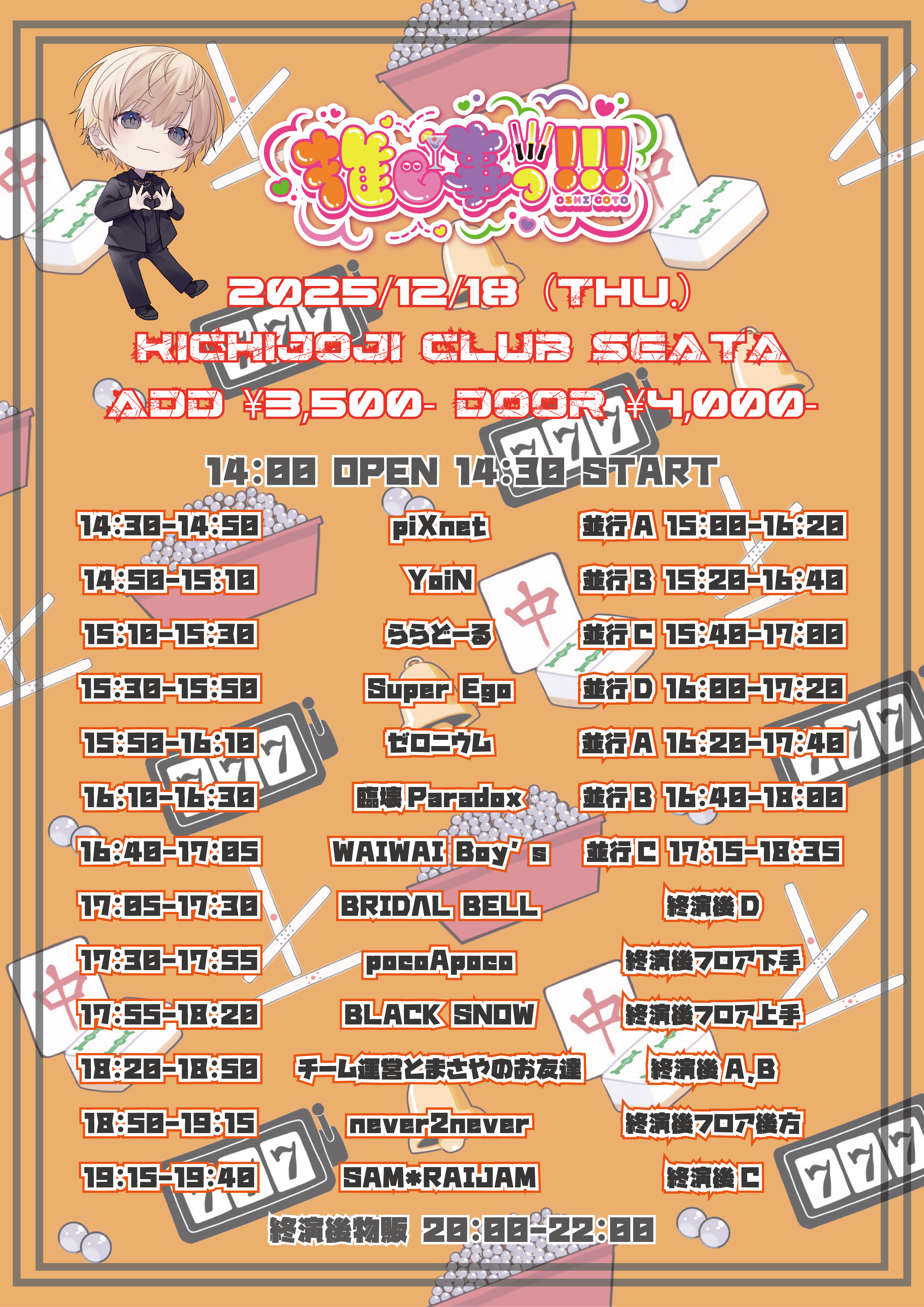 BRIDΛL BELL WAIWAI Boy's 臨壊paradox ゼロニウム pocoApoco SAM*RAIJAM never2never Super Ego チーム運営とまさやのお友達 YoiN piXent BLACK SNOW ららどーる