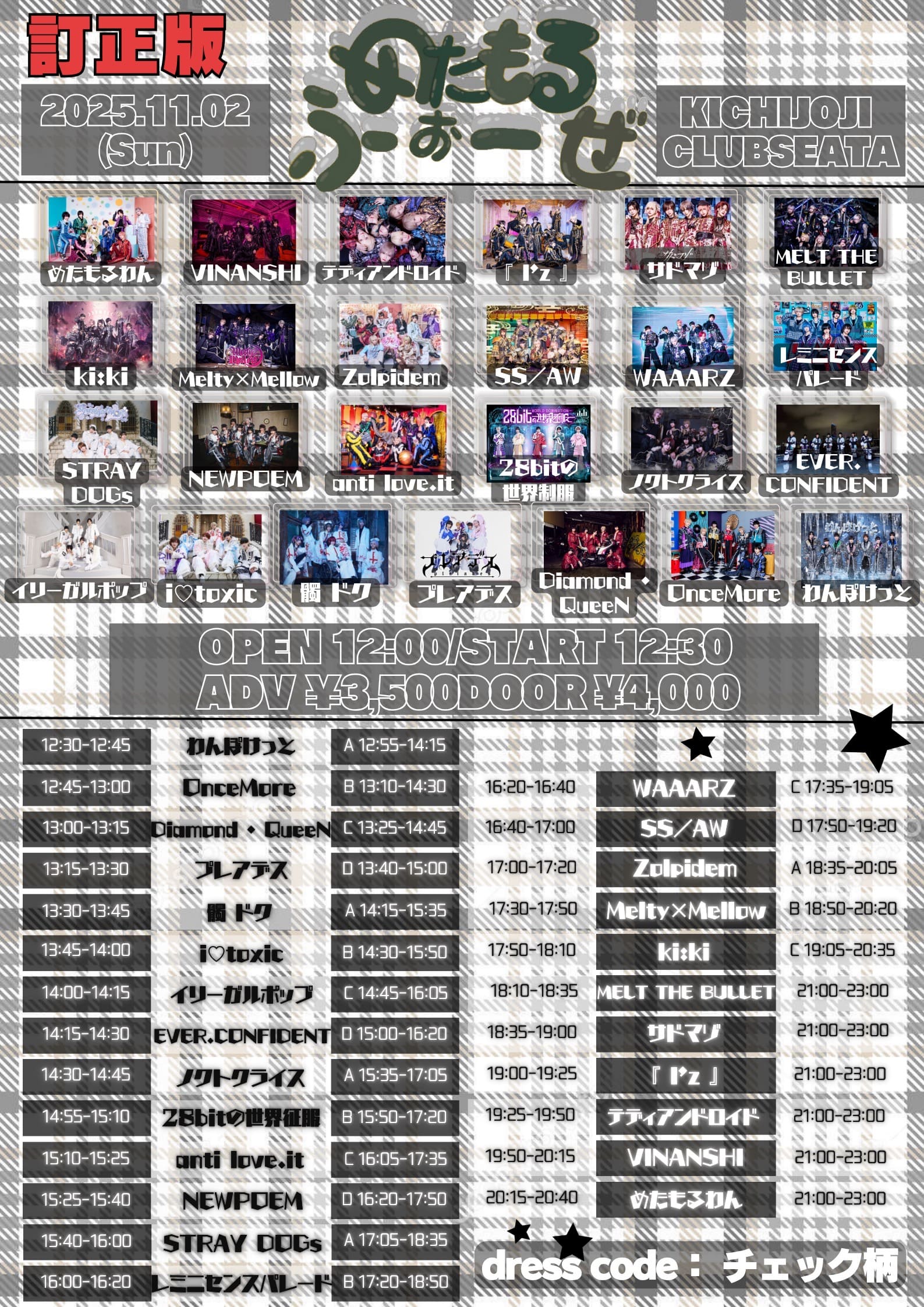 - ADV/DOOR ¥3,500/¥4,000 (1Drink代金¥700別途必要)
