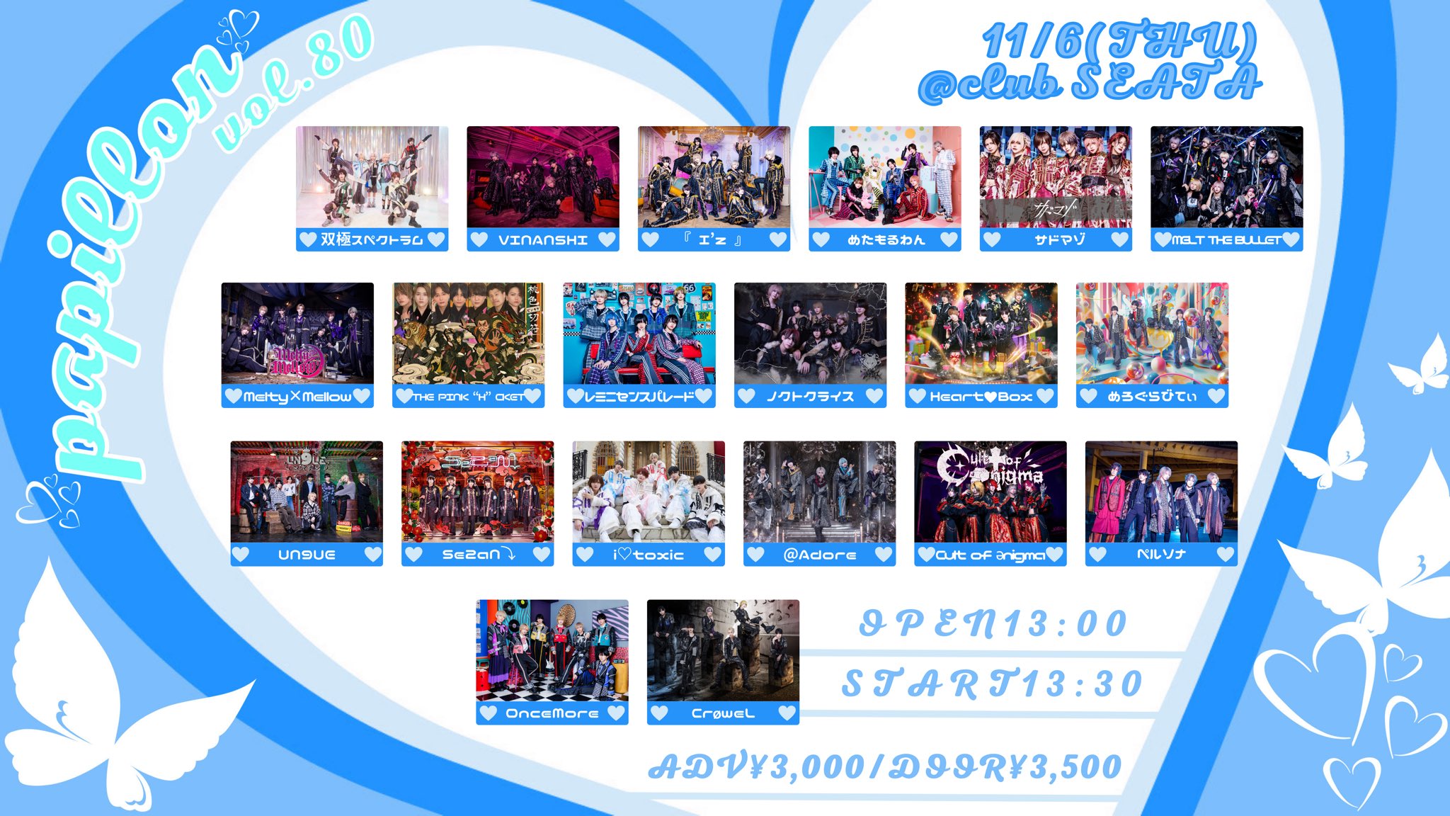 - 双極スペクトラム , VINANSHI , 『 I’z 』 , めたもるわん , サドマゾ , MELT THE BULLET , Melty×Mellow , THE PINK “H” CKET , レミニセンスパレード , ノクトクライス , Heart❤︎Box , めろぐらびてぃ , UN9UE , Se2aN⤵︎ , i♡toxic , @Adore , Cult of ǝnigma , ペルソナ , OnceMore , CrøweL