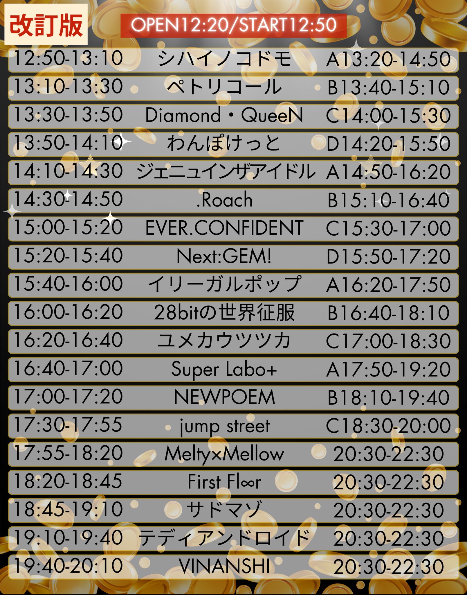 - VINANSHI , テディアンドロイド , サドマゾ , First Fl∞r , Melty×Mellow , jump street , NEWPOEM , Super Labo+ , ユメカウツツカ , 28bitの世界征服 , イリーガルポップ , Next:GEM! , EVER.CONFIDENT , .Roach , ジェニュインザアイドル , わんぽけっと , Diamond・QueeN , ペトリコール , シハイノコドモ