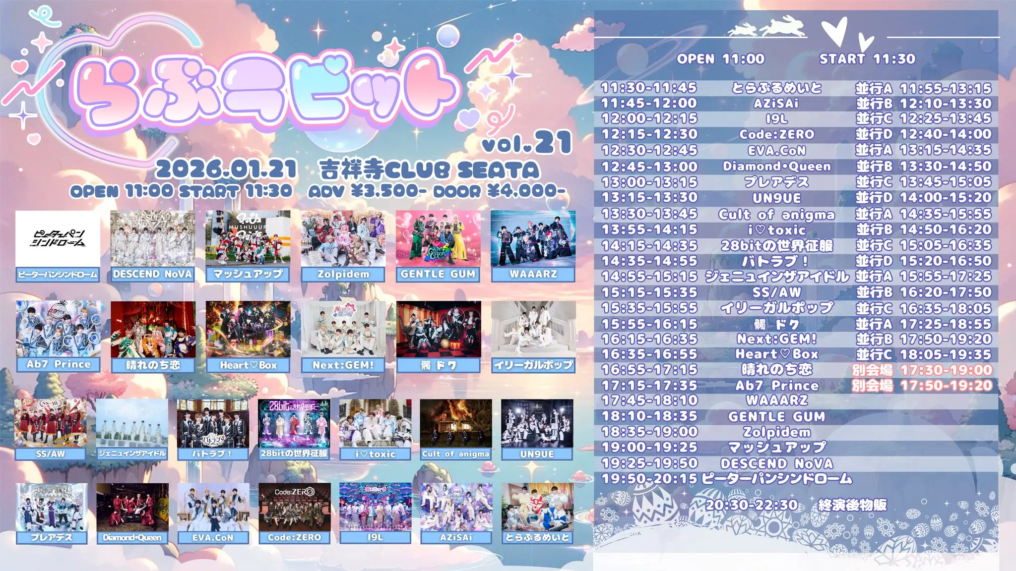 - WAAARZ Ab7 Prince DESCEND NoVA マッシュアップ ピーターパンシンドローム Zolpidem GENTLE GUM 晴れのち恋 Heart♡Box Diamond・QueeN Cult of enigma Next:GEM! 髑 ドク イリーガルポップ SS/AW ジェニュインザアイドル バトラブ! 28bitの世界征服 I♡toxic UN9UE プレアデス EVA.CoN Code:ZERO I9L AZiSAi とらぶるめいと