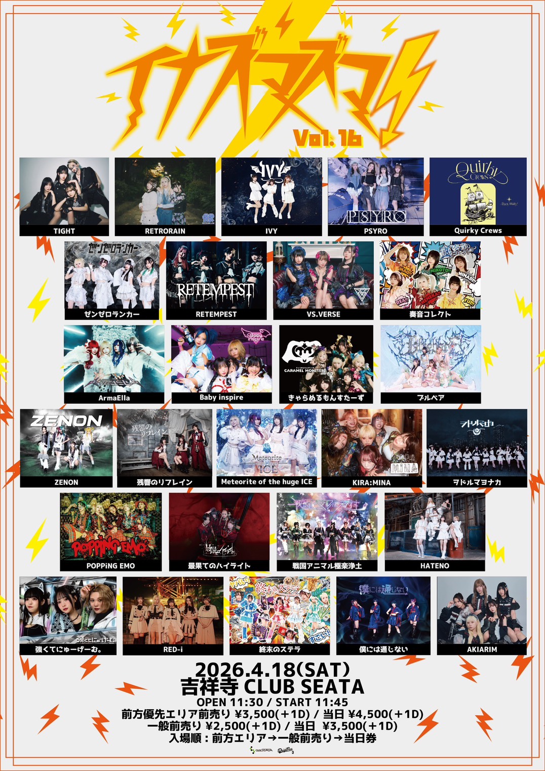 - 前方優先エリア前売り3500円/当日4500円(1Drink代金¥700別途必要) / 一般前売り2500円/当日3500円 (1Drink代金¥700別途必要)