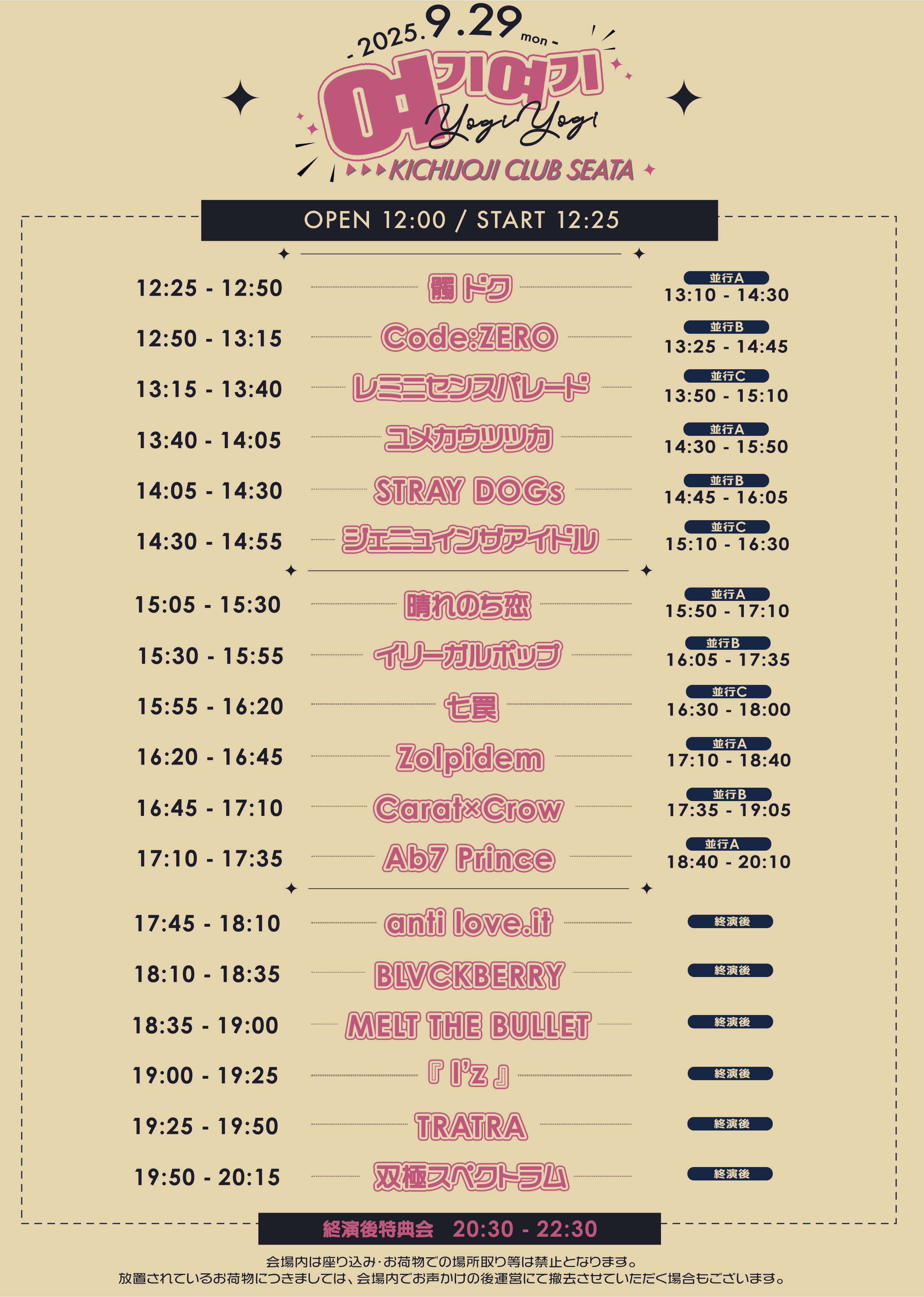 - 双極スペクトラム , TRATRA , 『 I'z 』 , MELT THE BULLET , BLVCKBERRY , anti love.it , Ab7 Prince , Carat×Crow , Zolpidem , 七罠 , イリーガルポップ , 晴れのち恋 , ジェニュインザアイドル , STRAY DOGs , ユメカウツツカ , レミニセンスパレード , petite bomb! , 髑 ドク