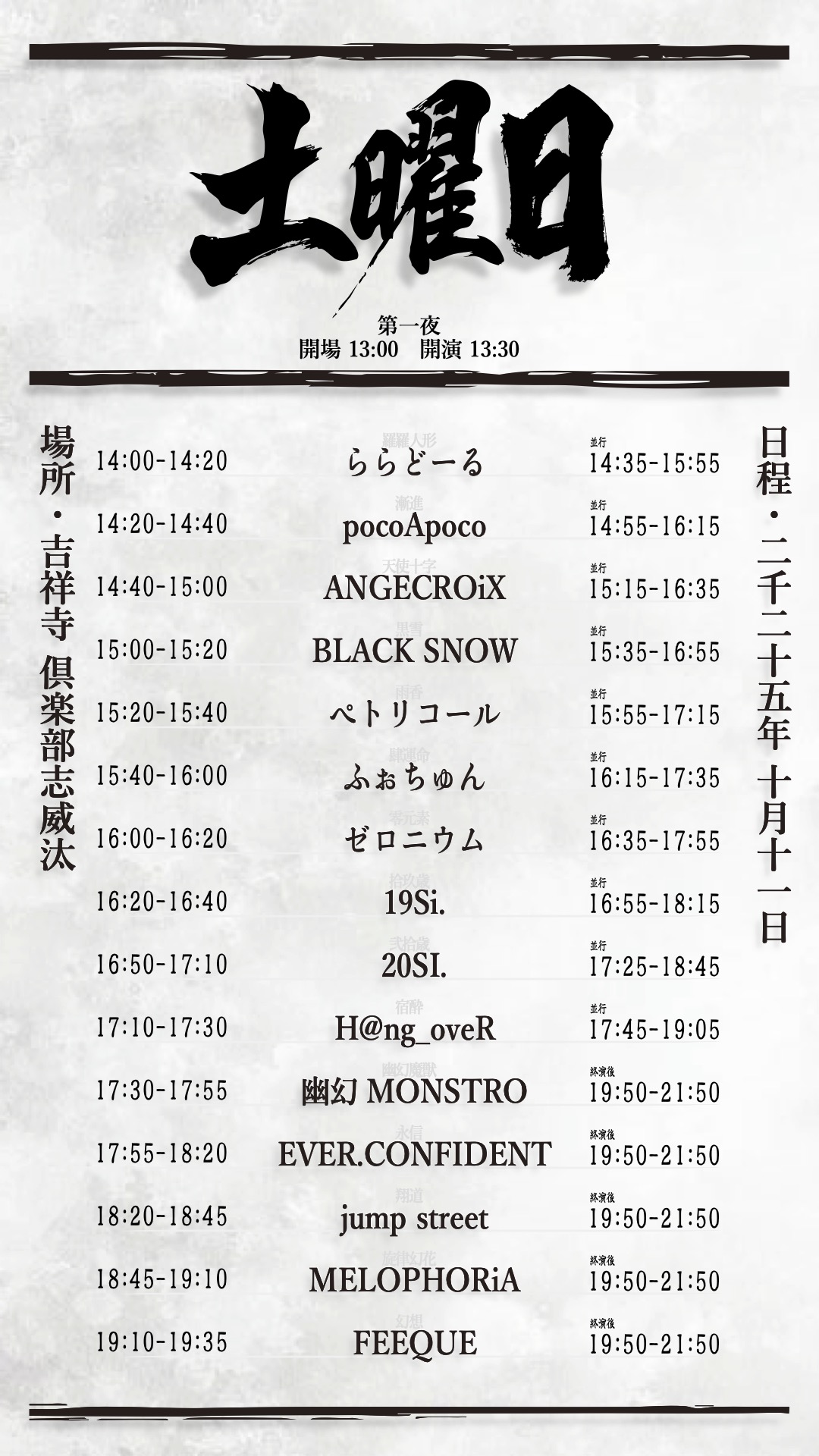- FEEQUE , MELOPHORiA , jump street , EVER.CONFIDENT , 幽幻MONSTRO , H@ng_oveR , 20SI. , 19Si. , ゼロニウム , ふぉちゅん , ペトリコール , BLACK SNOW , ANGECROiX , pocoApoco , ららどーる