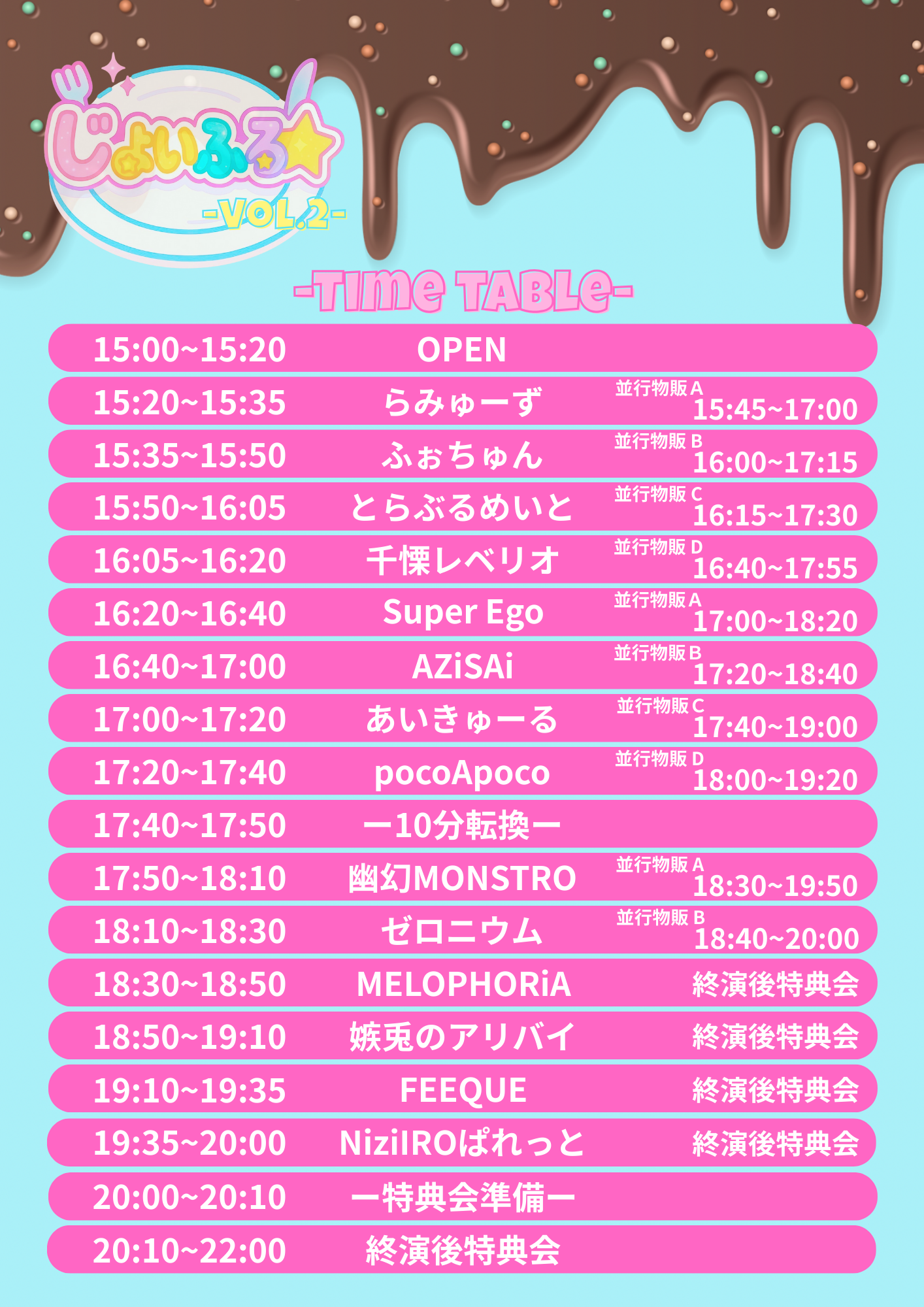 - NiziIROぱれっと FEEQUE 嫉兎のアリバイ MEROPHORiA ゼロニウム 幽幻MONSTRO pocoApoco あいきゅーる AZiSAi Super Ego 千慄レベリオ とらぶるめいと ふぉちゅん らみゅーず