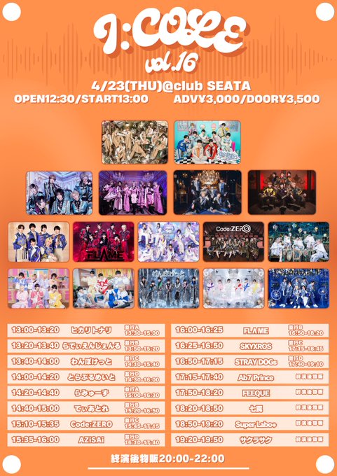 - ADV/DOOR ¥3,000/¥3,500 (1Drink代金¥700別途必要)
