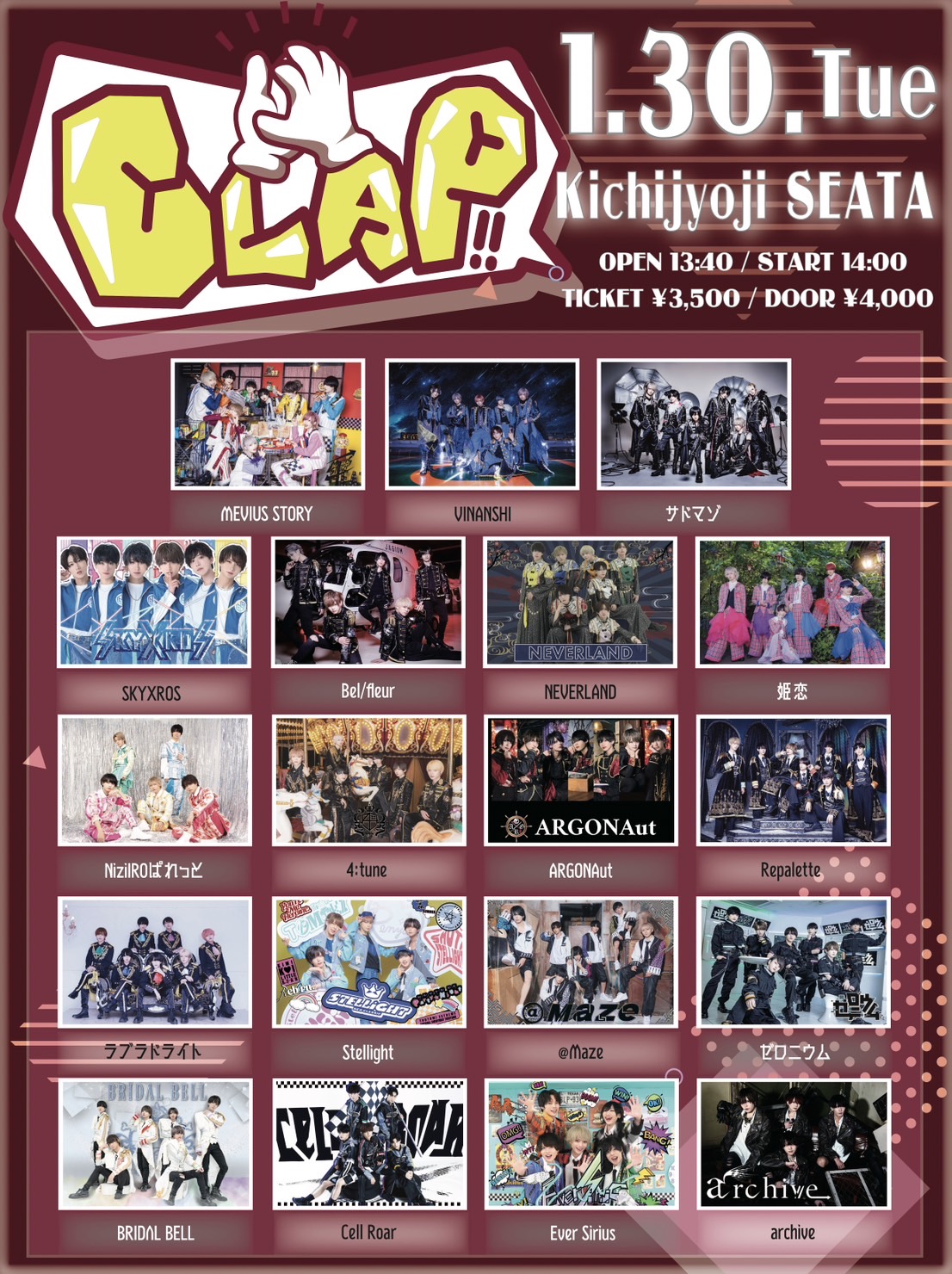 - ADV/DOOR ¥3500/¥4000 (1Drink代金¥600別途必要)