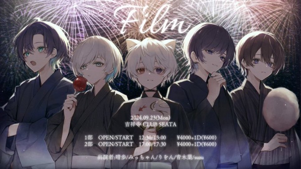 - 【1部】ADV/DOOR ¥4,000/¥4,500 (1Drink代金¥600別途必要)【2部】ADV/DOOR ¥4,000/¥-4,500(1Drink代金¥600別途必要)