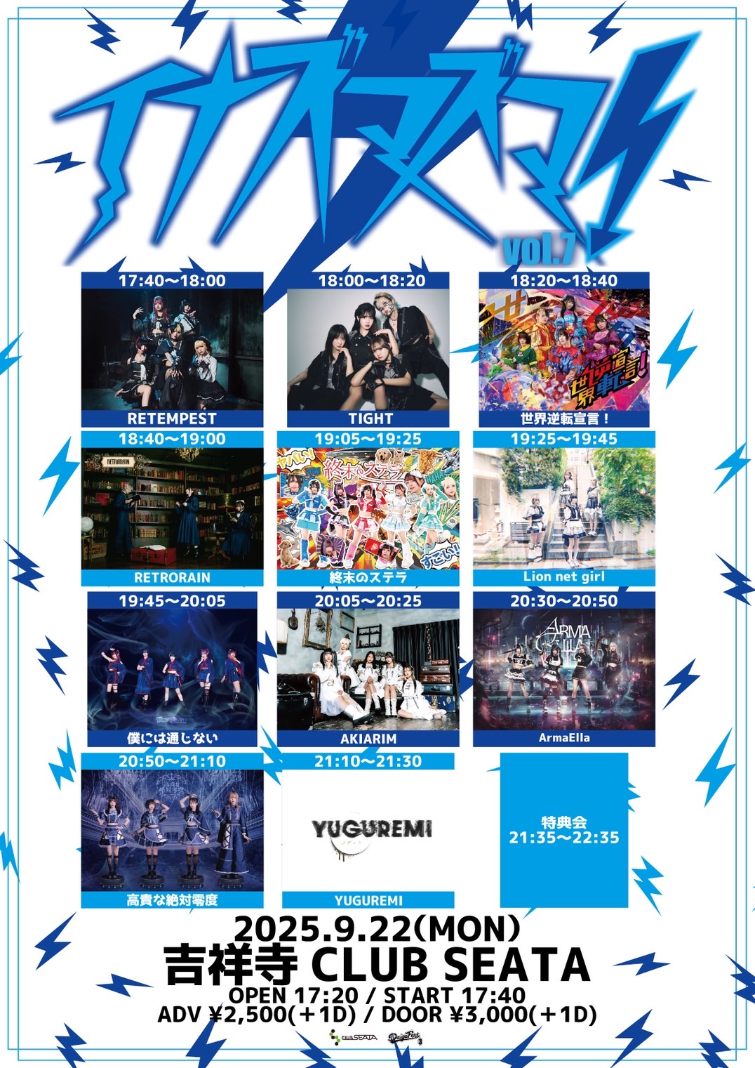 - ADV/DOOR ¥2500/¥3000 (1Drink代金¥700別途必要)