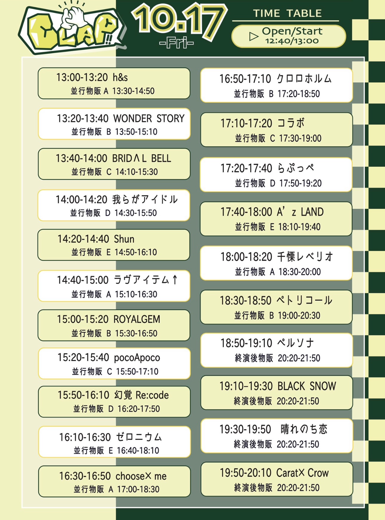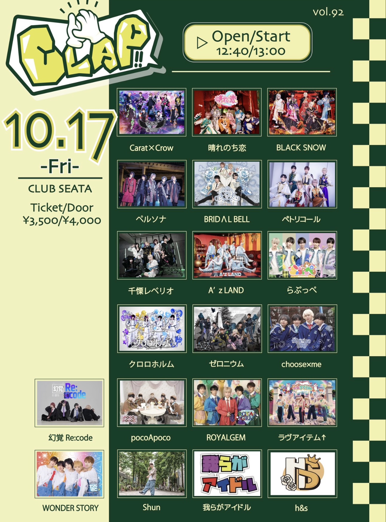 吉祥寺 CLUB SEATA スケジュール 2025.10.17(Fri) CLAP!!vol.92 [OPEN/START] 12:40/13:00 [料金] ADV/DOOR ¥3500/¥4000 (1Drink代金¥700別途必要) チケット発売 10月9日(木)22:50- https://t.livepocket.jp/e/yzub6 ※チケ発開始10分間はシステム関与の対策の為、クレジットカードのみの決済とさせて頂きます。
