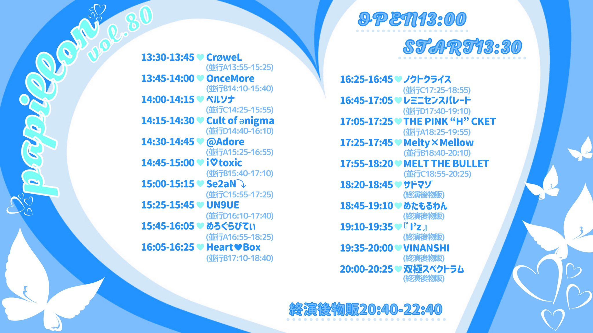 - 双極スペクトラム , VINANSHI , 『 I’z 』 , めたもるわん , サドマゾ , MELT THE BULLET , Melty×Mellow , THE PINK “H” CKET , レミニセンスパレード , ノクトクライス , Heart❤︎Box , めろぐらびてぃ , UN9UE , Se2aN⤵︎ , i♡toxic , @Adore , Cult of ǝnigma , ペルソナ , OnceMore , CrøweL