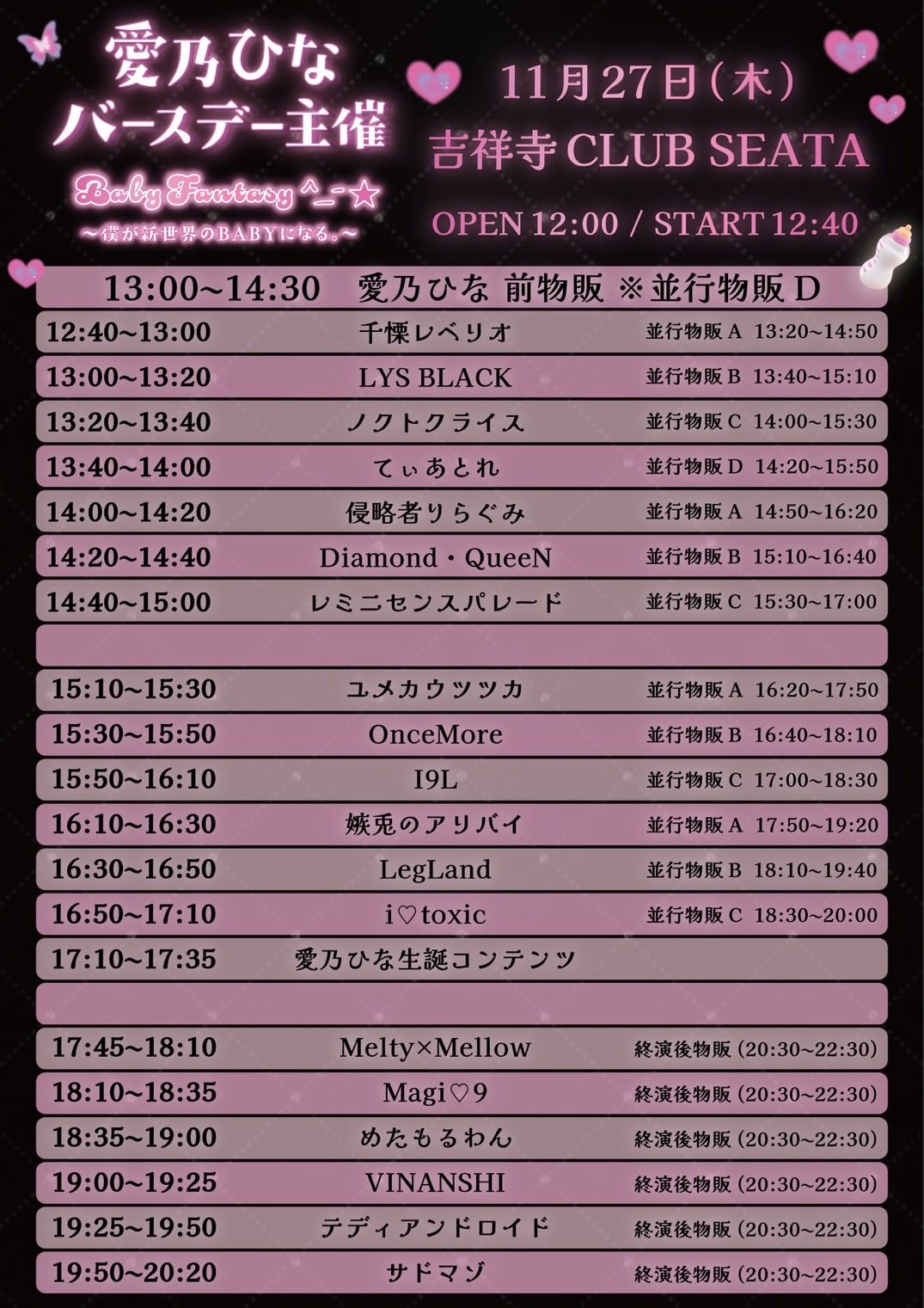- サドマゾ , テディアンドロイド , VINANSHI , めたもるわん , Magi♡9【マジきゅん!】 , Melty×Mellow , i♡toxic , Leg Land , 嫉兎のアリバイ , I9L , OnceMore , ユメカウツツカ , レミニセンスパレード , Diamond・QueeN , 侵略者りらぐみ , てぃあとれ , ノクトクライス , LYS BLACK , 千慄リベリオ
