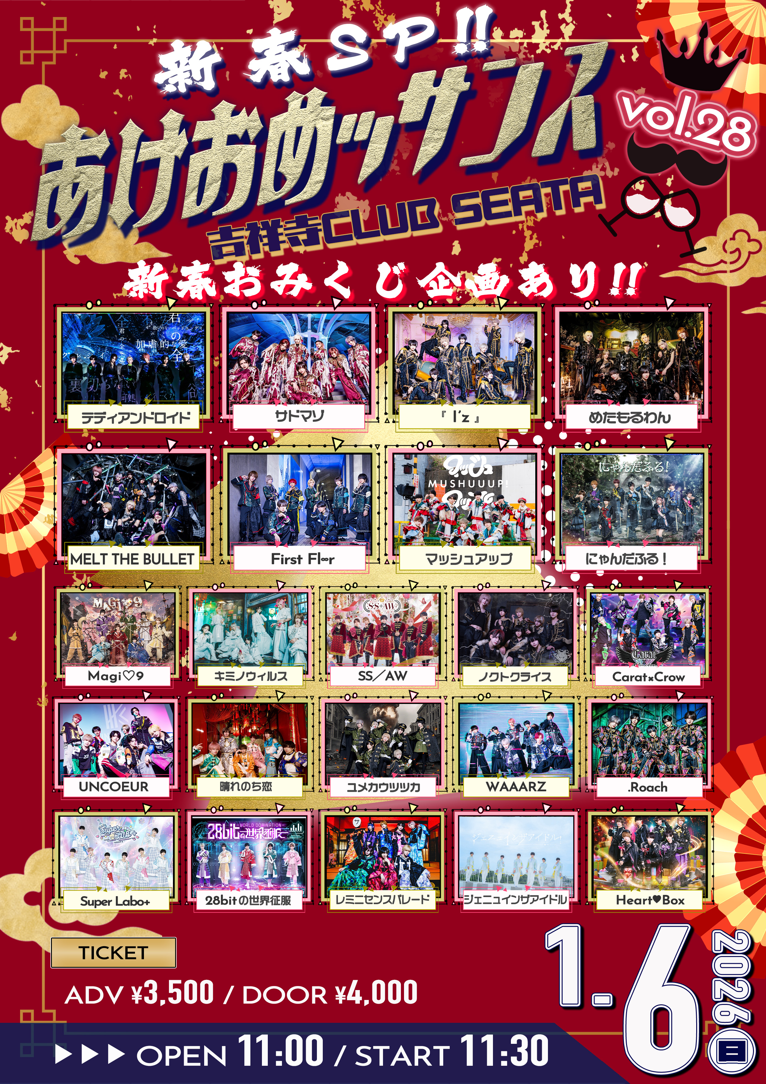 - ADV/DOOR ¥3,500/¥4,000 (1Drink代金¥700別途必要)