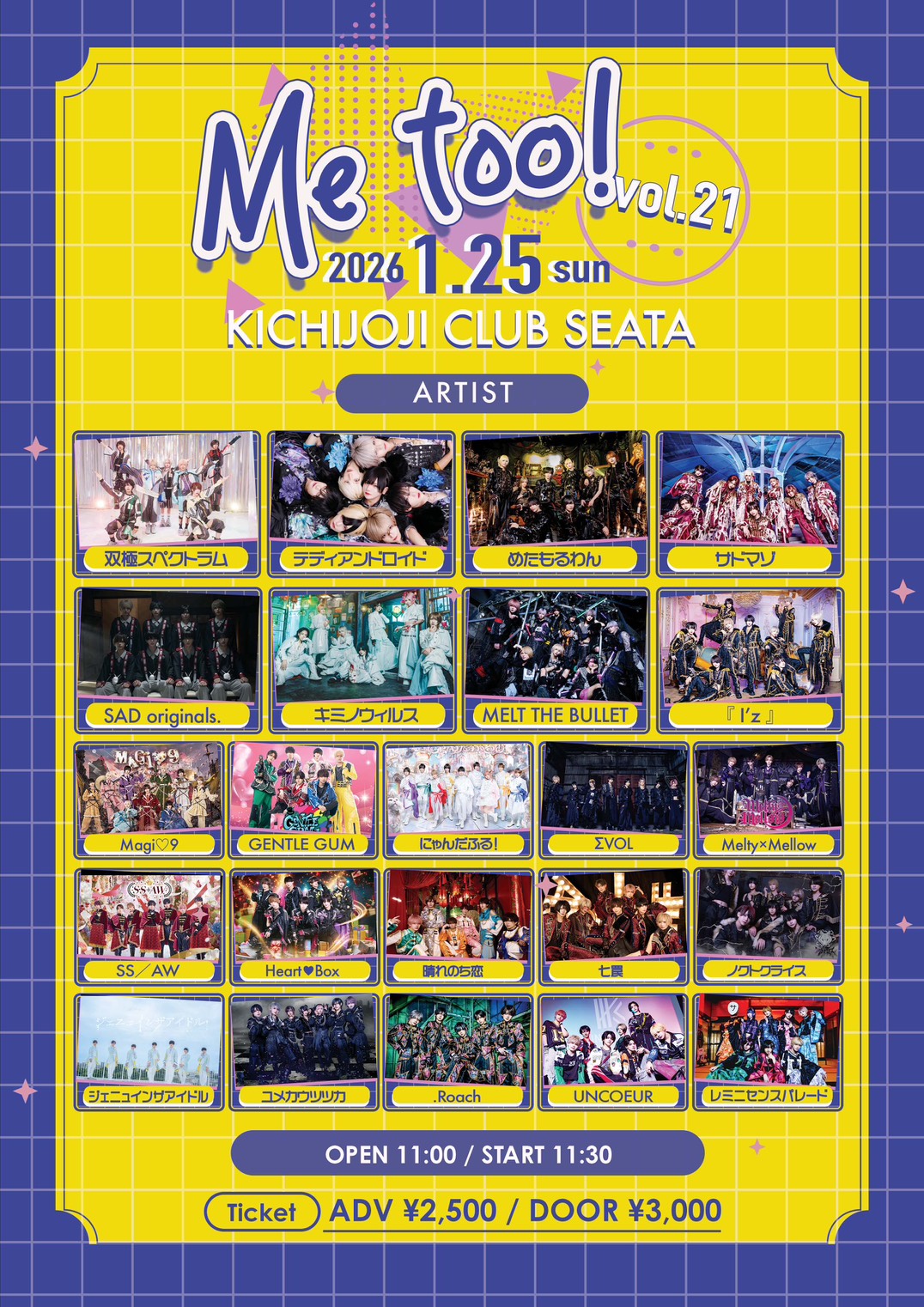 - ADV/DOOR ¥2,500/¥3,000 (1Drink代金¥700別途必要)