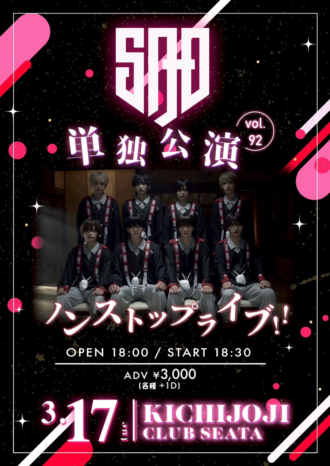 吉祥寺 CLUB SEATA スケジュール 2026.3.17(Tue) SAD originals.単独定期公演 vol.92 [ACT] SAD originals. [OPEN/START] OPEN18:00/ START18:30 [料金] ADV/DOOR ¥3,000/¥-- (1Drink代金¥700別途必要) チケット販売 https://livepocket.jp/e/q8ahm