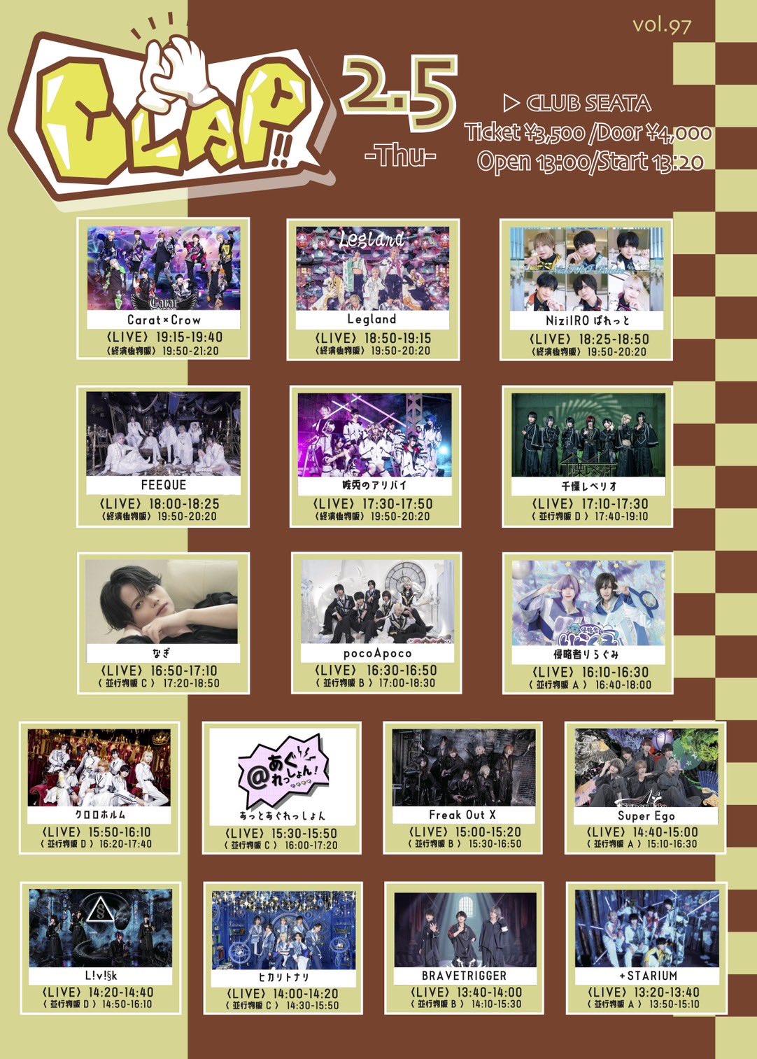 - Carat×Crow Legland NiziIROぱれっとFEEQUE 嫉兎のアリバイ 千慄レベリオ なぎ pocoApoco 侵略者りらぐみ クロロホルム あっとあぐれっしょん Freak Out X Super Ego L!v!§k ヒカリトナリ BRAVETRIGGER +STARIUM