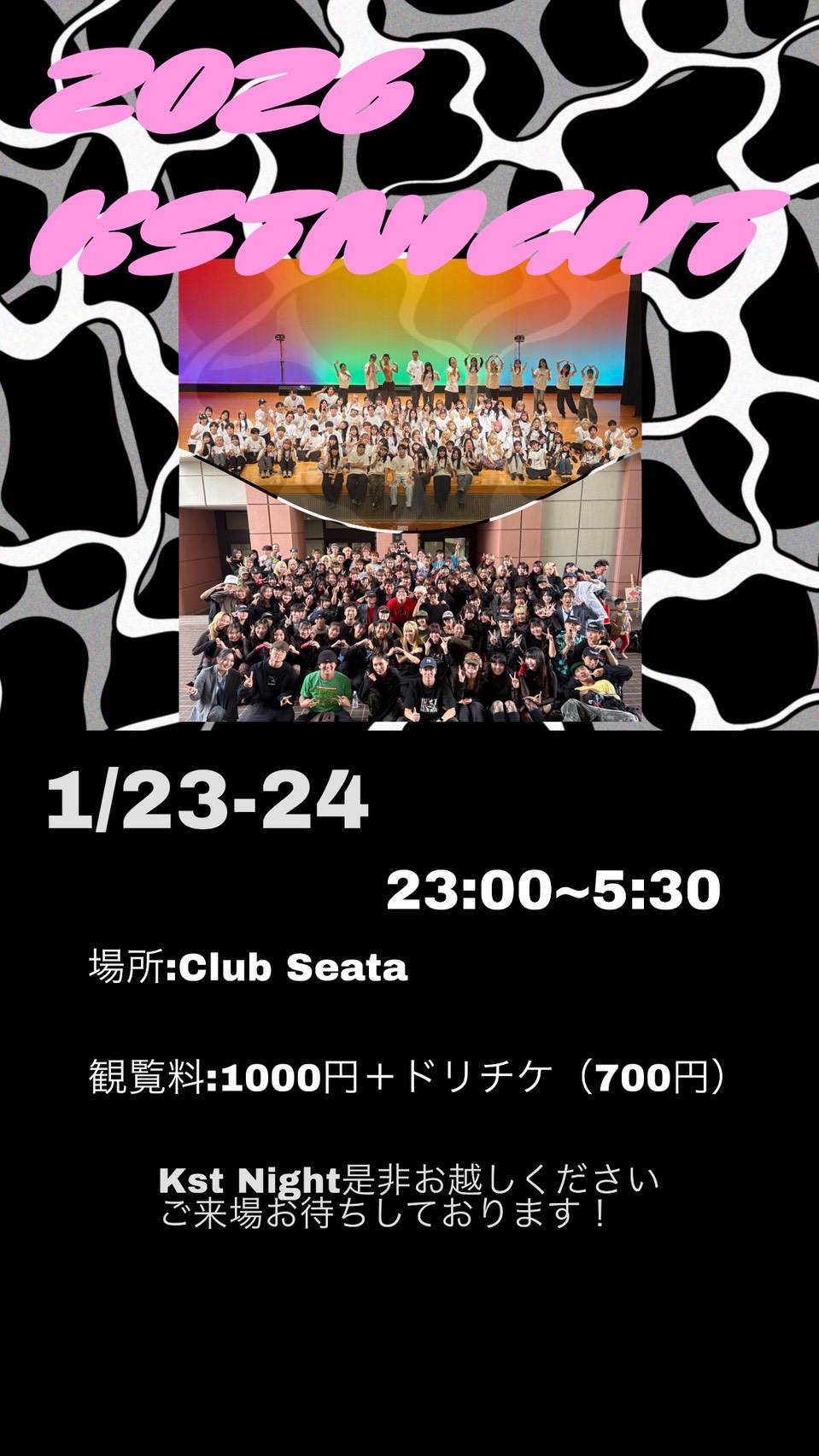 吉祥寺 CLUB SEATA スケジュール 2026.1.23(Fri) 2026 KSTNIGHT [OPEN/START] 23:00/23:30 [料金] 観覧料¥1,000 (1Drink代金¥700別途必要)