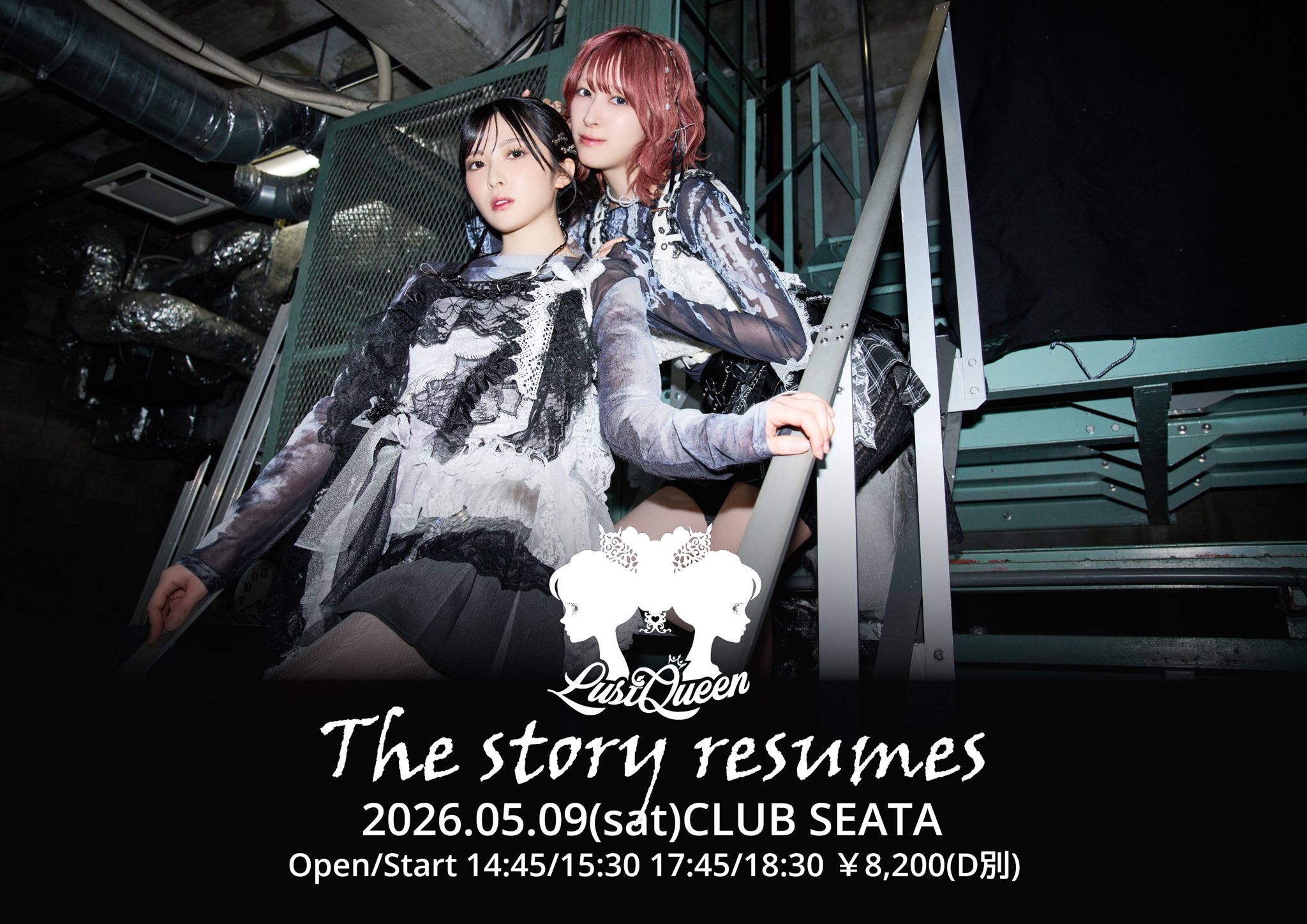 吉祥寺 CLUB SEATA スケジュール 2026.5.09(Sat) LustQueen「The story resumes」 [ACT] LustQueen [OPEN/START] 【1部】開場 14:45 / 開演 15:30 【2部】 開場 17:45 / 開演 18:30 [料金] ADV/DOOR ¥¥8,200(税込)/¥-- (1Drink代金¥700別途必要) ※入場時ドリンク代別途必要 ※未就学児入場不可 ※枚数制限:1枚