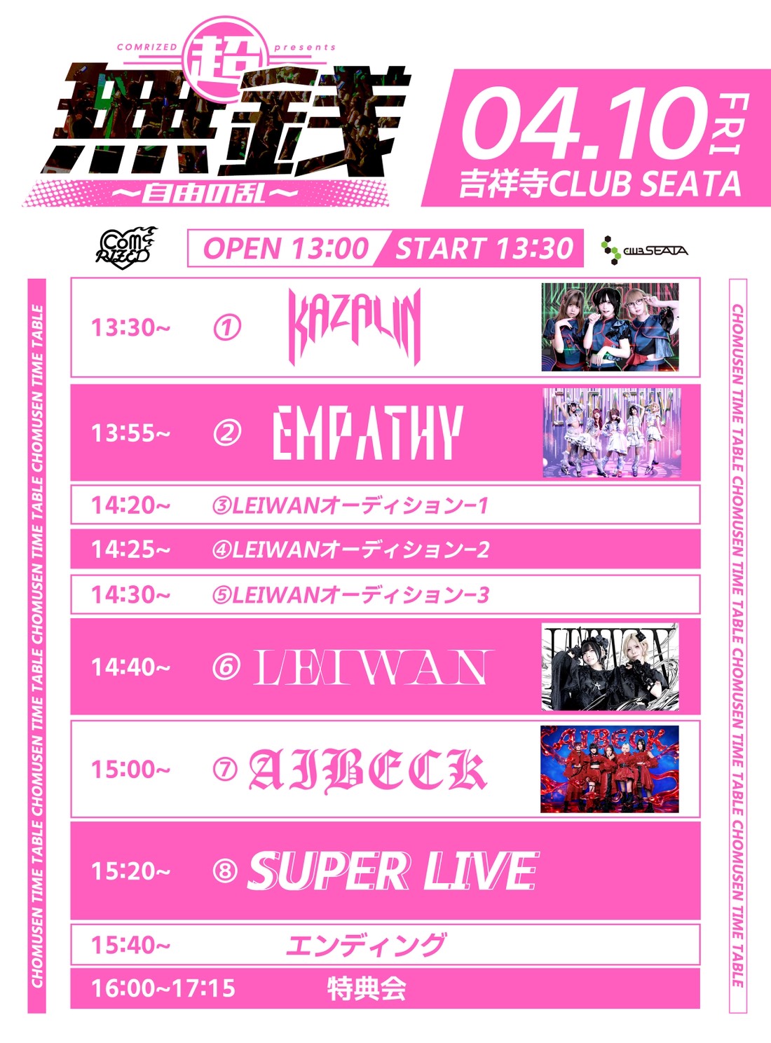 - AIBECK / LEIWAN / EMPATHY / KAZALIN ※LEIWAN新メンバーオーディション3名